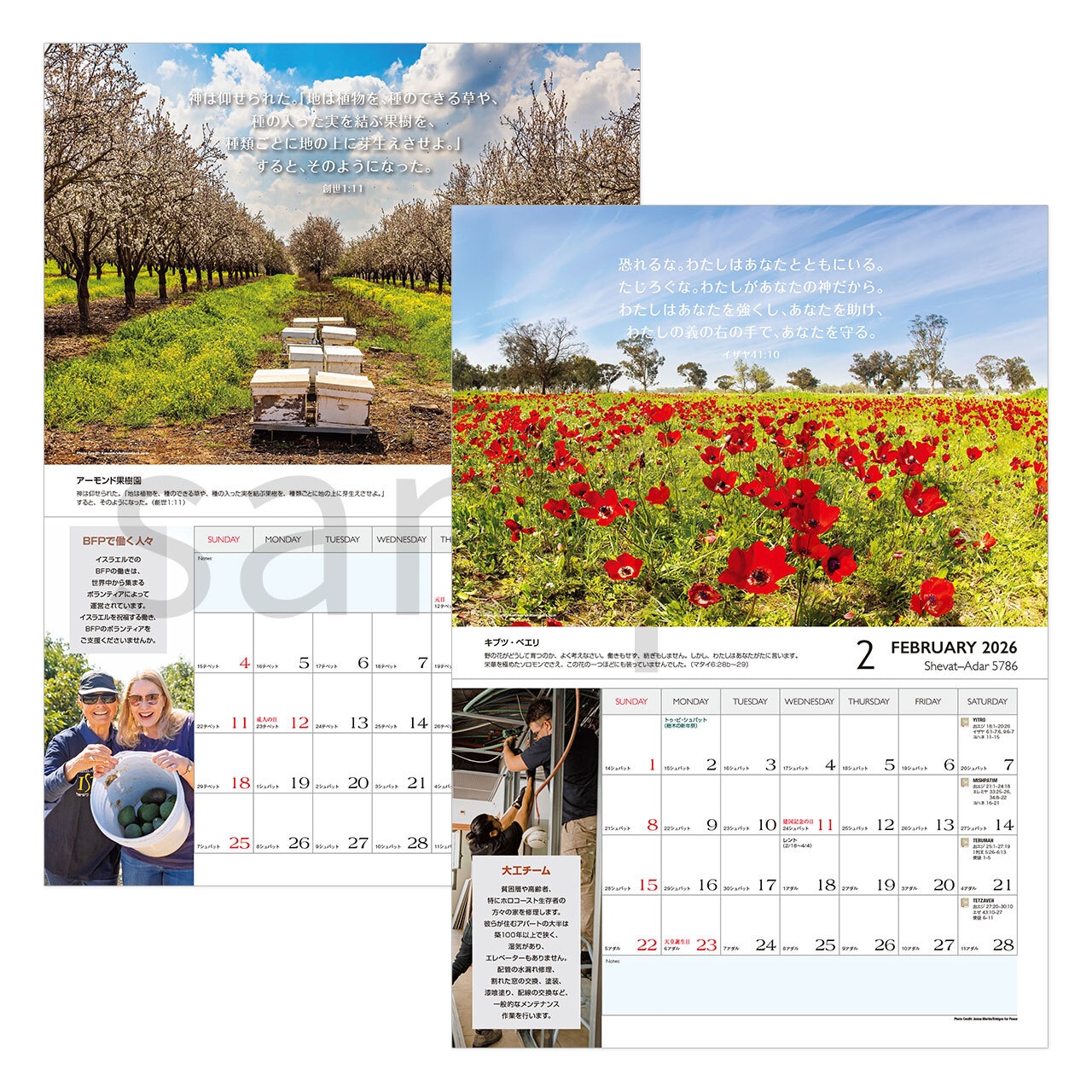 BFPユダヤ暦カレンダー2026 送料無料【10冊ご購入ごとに1冊プレゼント】