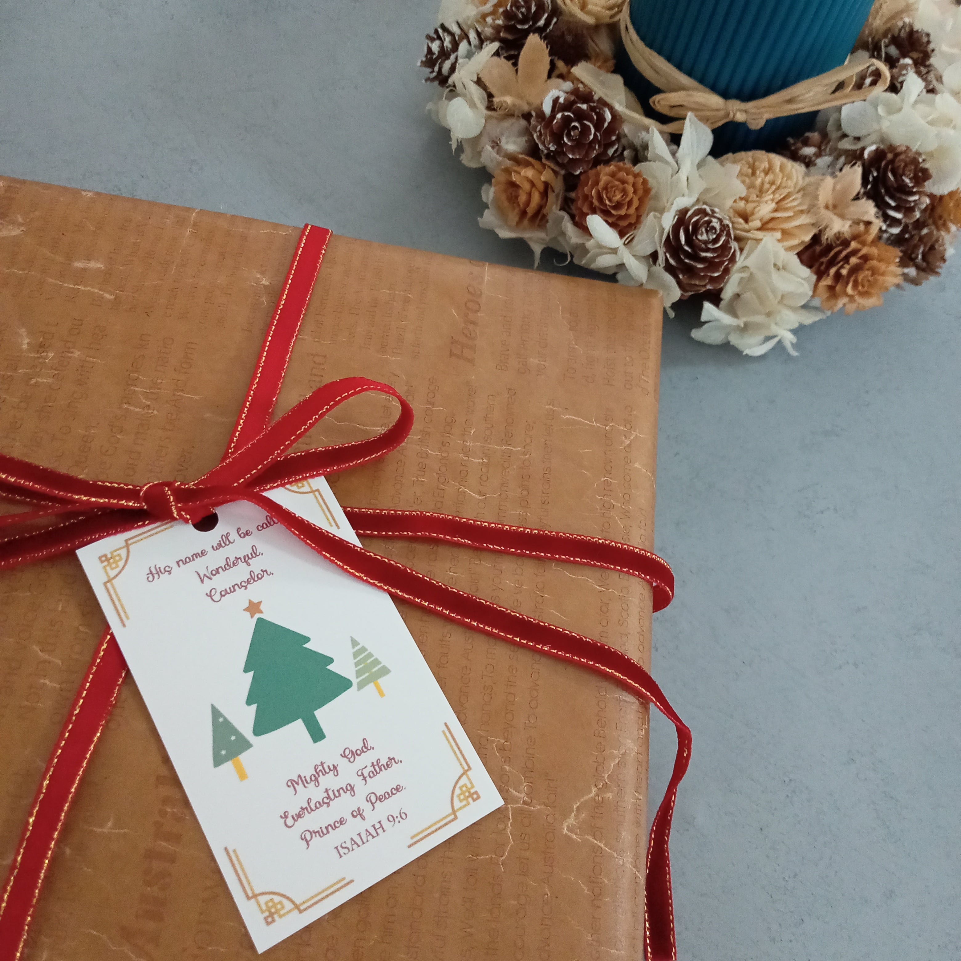 上部にパンチで穴をあけて、リボンを通してアレンジもできます